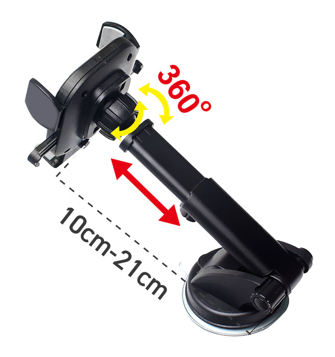 The super strong suction cup ensures a secure attachment to glass surfaces, increasing adhesion and stability while driving. The support rod length can also be easily extended or contracted to accommodate different phone sizes and positions.